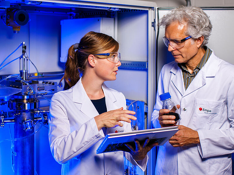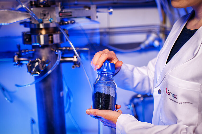 Die Industrie ist neben dem Gebäudepark und der Mobilität der drittgrösste Energieverbraucher der Schweiz. Insbesondere Hochtemperatur-Prozesse in der Metallverarbeitung und der chemischen Industrie, die oft mit Erdgas betrieben werden, führen zu einem Endenergieverbrauch dieses Sektors von jährlich rund 22 Terawattstunden. Gemeinsam mit dem Tech Cluster Zug, dem Kanton Zug und über einem Dutzend weiteren Partnern hat sich die Empa 2022 zum «Verein zur Dekarbonisierung der Industrie» (VzDI) zusammengeschlossen. In diesem Rahmen wollen die Empa-Forschenden dazu beitragen, Hochtemperatur-Prozesswärme zu dekarbonisieren. «Die Dekarbonisierung nehmen wir dabei wörtlich», sagt Christian Bach, Abteilungsleiter Fahrzeugantriebssysteme der Empa. «Wir trennen durch ein Pyrolyseverfahren den Kohlenstoff im Erdgas vor der Verbrennung ab». Was bleibt, ist Wasserstoff, mit dem die industriellen Hochtemperaturprozesse betrieben werden können, und der abgetrennte Kohlenstoff in Pulverform, der für Anwendungen in der Bau- und Landwirtschaft weiterentwickelt werden soll. Eine entsprechende Demonstrationsanlage befindet sich in der Auslegungsphase und wird in den nächsten zwei Jahren in Zug aufgebaut. Der Wasserstoff wird dort dann im Emaillierungsofen der V-Zug AG genutzt.